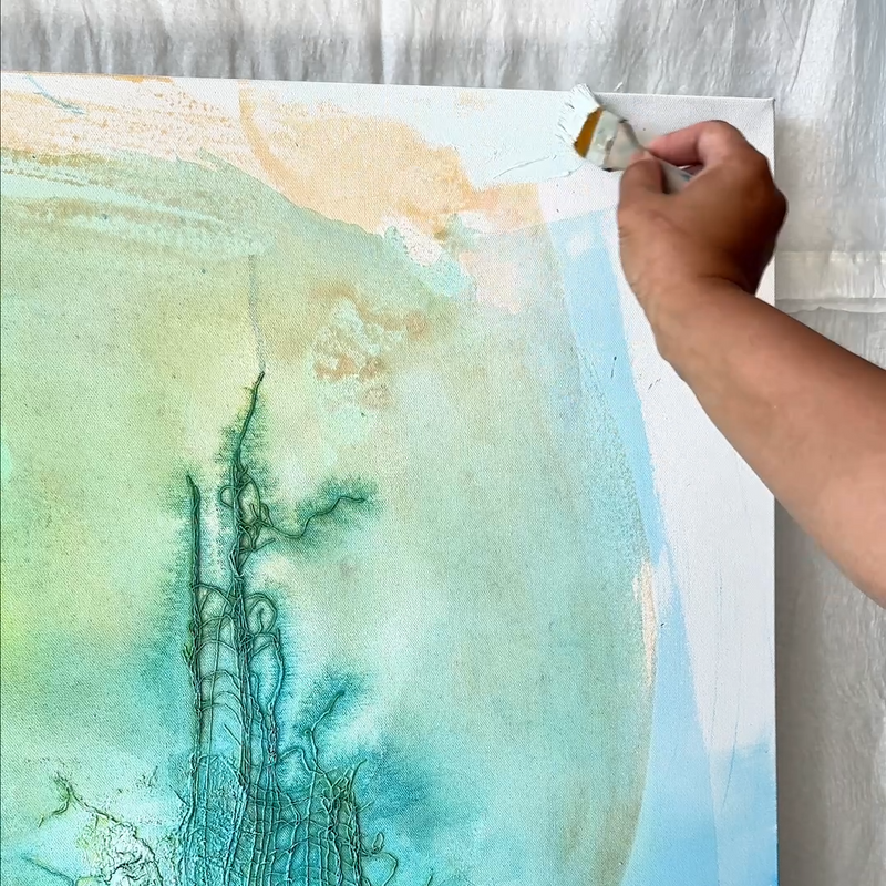 Colors shifted, forms reappeared, meanings unfolded in their own time. Each layer became a response to what the painting remembered, an ongoing dialogue between control and release, clarity and mystery.