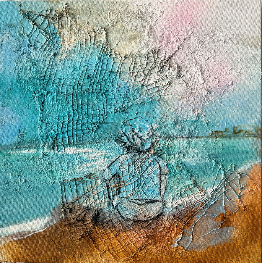 Medium: Mixed media (Acrylic, Paper, Fabric, Charcoal, Ink) on Canvas